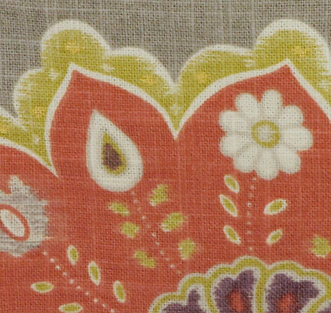 Passionfruit & grey linen Satchel with silver strap reversable/lined with grey lotus print