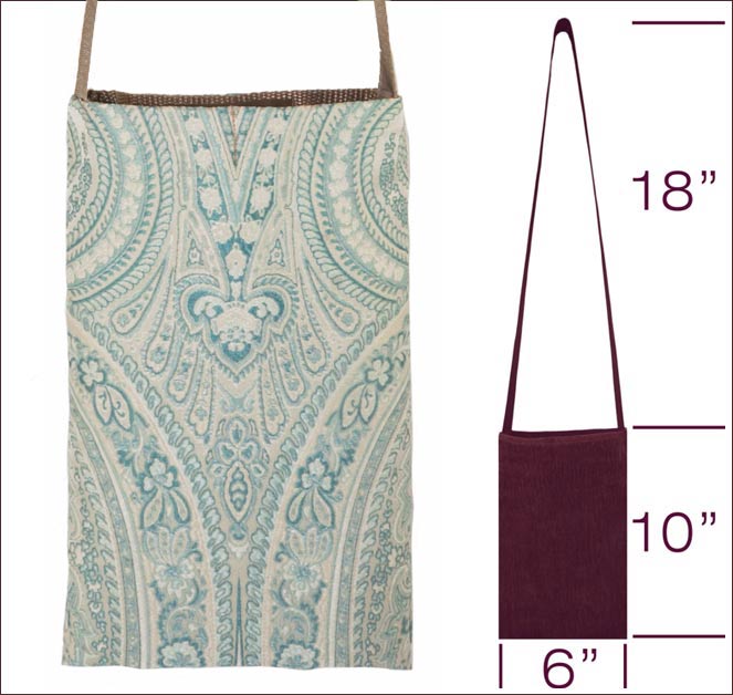 Teal and silver hue brocade fabric Pouch with khaki strap